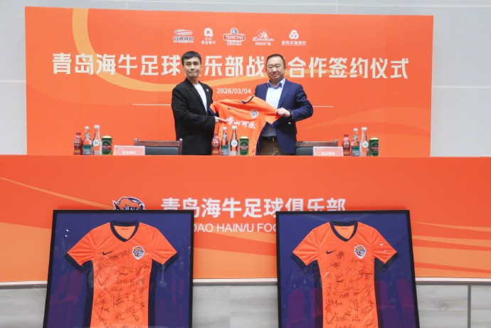 “3月4日,青島海牛足球俱樂部2026賽季出征儀式在城陽區(qū)青春足球場圓滿舉行。2026賽季,青島海牛足球俱樂部將攜手青島本土品牌青島啤酒、青島飲料集團、青島銀行、青島農(nóng)商銀行一同為這座城市的榮譽而戰(zhàn),出征儀式中,俱樂部與該4大品牌進行了簽約儀式,攜手向前。活動期間,新賽季球衣由部分球員展示,胸前廣告‘嶗山可樂’首次亮相。”