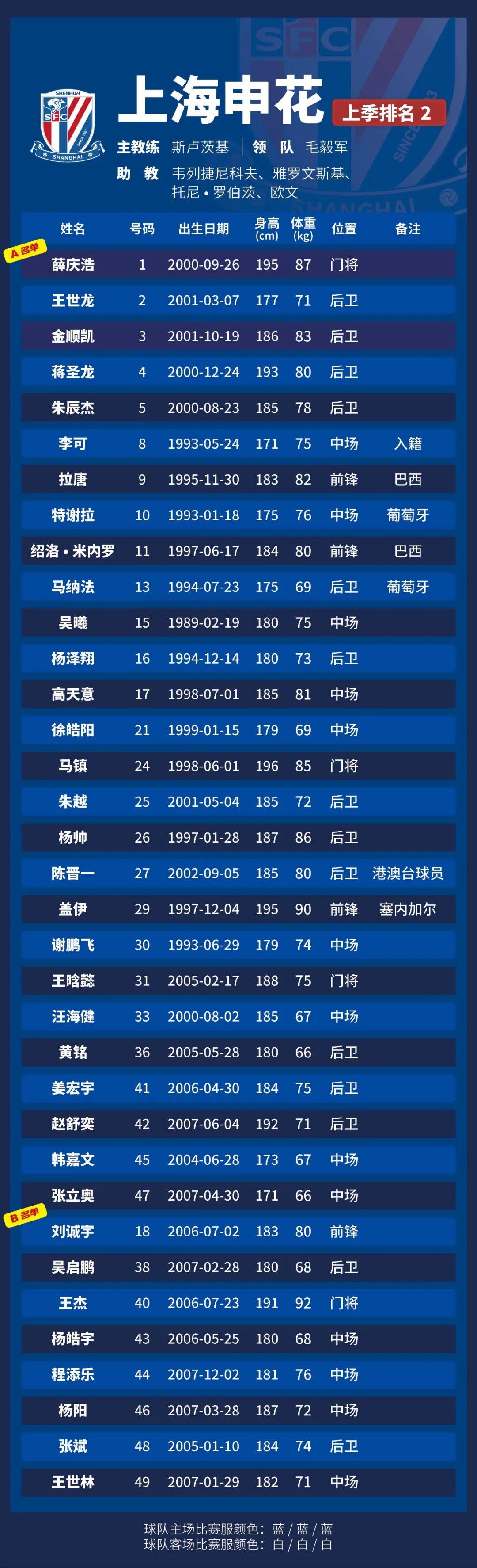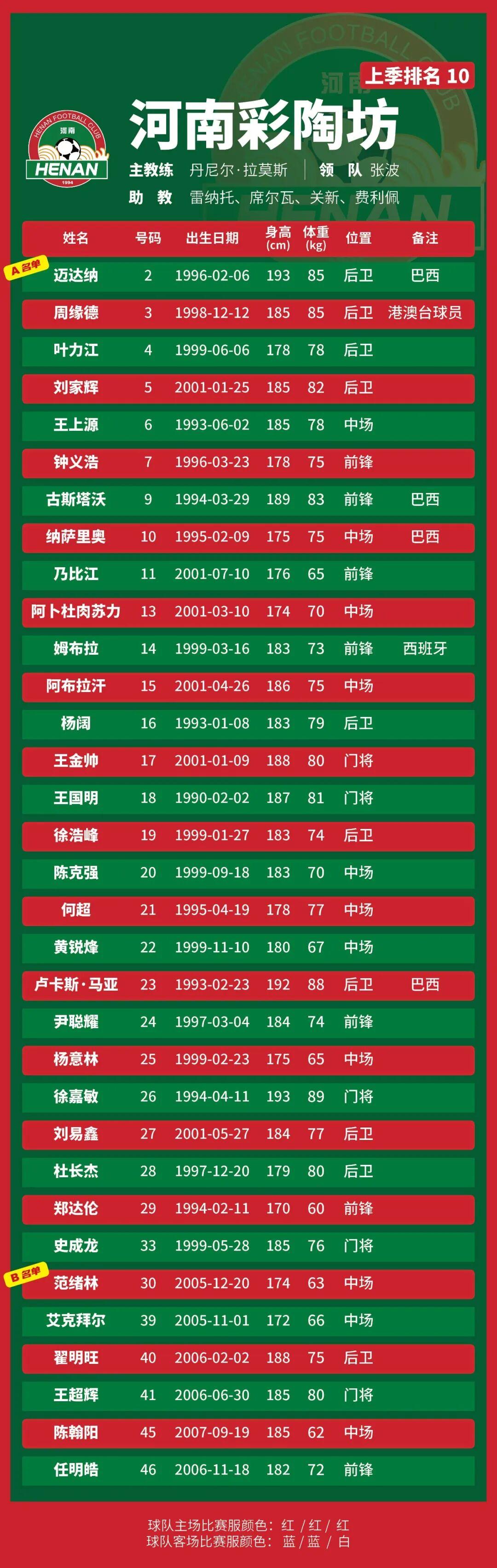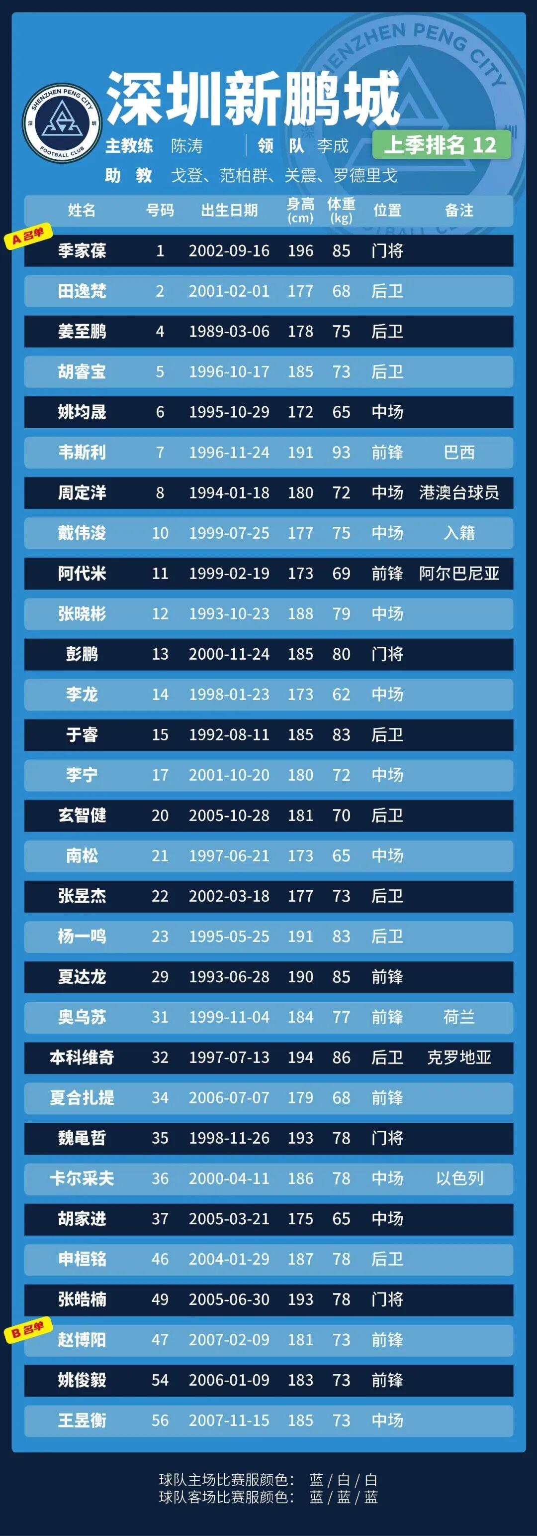 p.s.數(shù)據(jù)采用各隊中超報名表登記內(nèi)容,