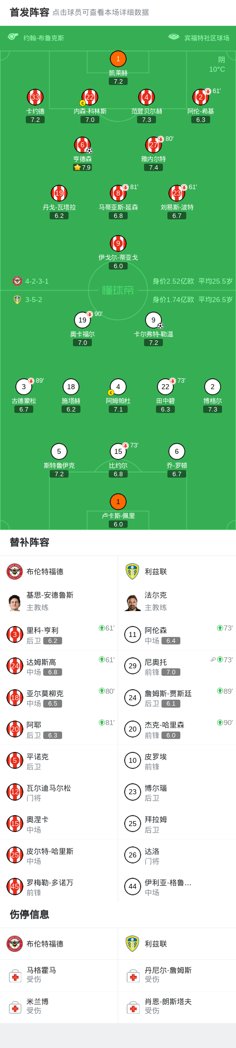第70分鐘,亨德森禁區(qū)內(nèi)折射破門,布倫特福德1-0利茲聯(lián)