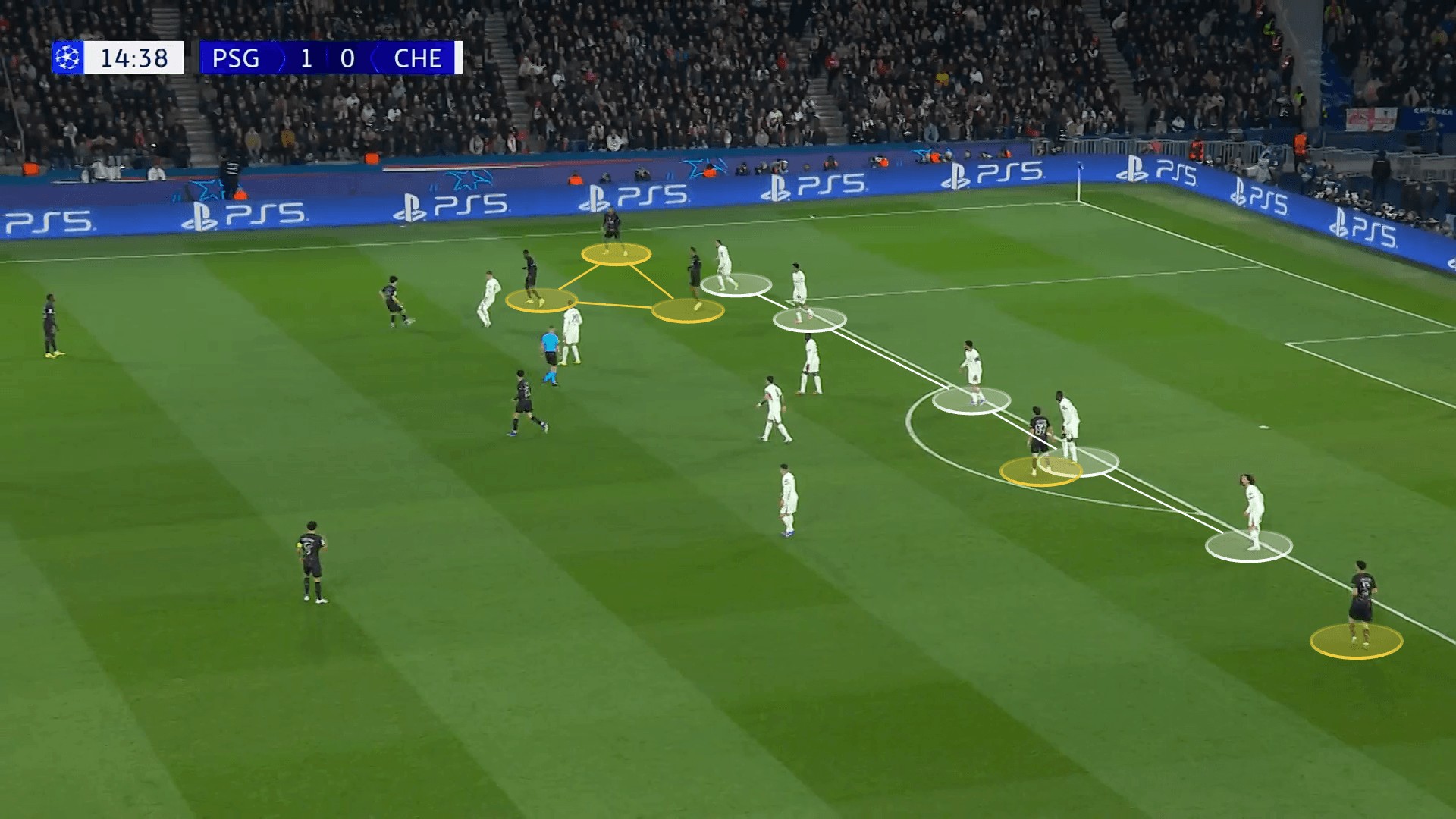 上周巴黎首回合較量中,大巴黎拆解切爾西人盯人體系的戰(zhàn)術(shù)則另辟蹊徑:球員先扎堆聚攏,再突然分散拉開,輔以流暢的全場換位,徹底打亂切爾西的防守部署。