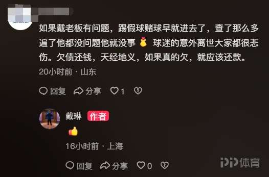 前國腳戴琳近期深陷“拖欠球迷救命錢”風波,社交媒體顯示,戴琳昨夜點贊評論了多條支持自己的言論。