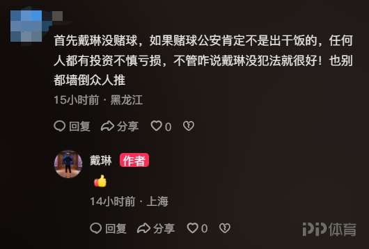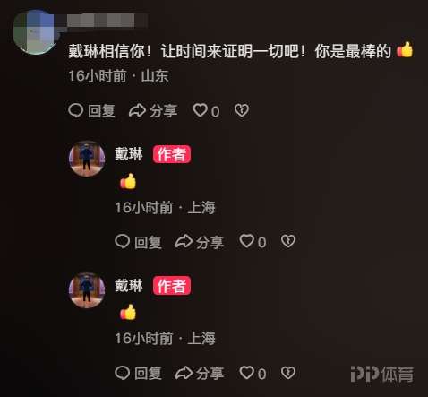 在昨天晚間,戴琳在其社媒評論區(qū)點贊了多條評論,內(nèi)容大致為聲援他沒有賭球,以及相信、勉勵他的話語。