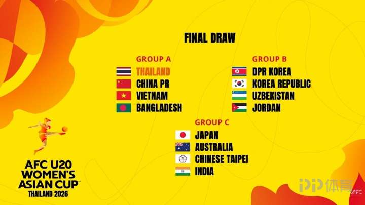 2026年泰國U20女足亞洲杯抽簽儀式進(jìn)行,中國U20女足與泰國、越南、孟加拉國同組。