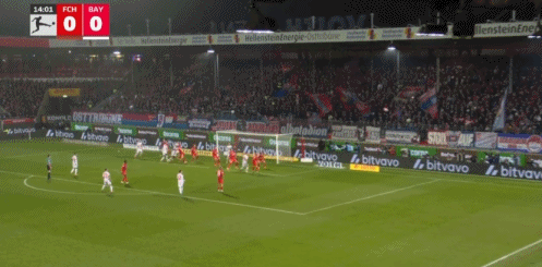 第15分鐘,拜仁角球,斯塔尼希奇頭球破門,拜仁1-0海登海姆